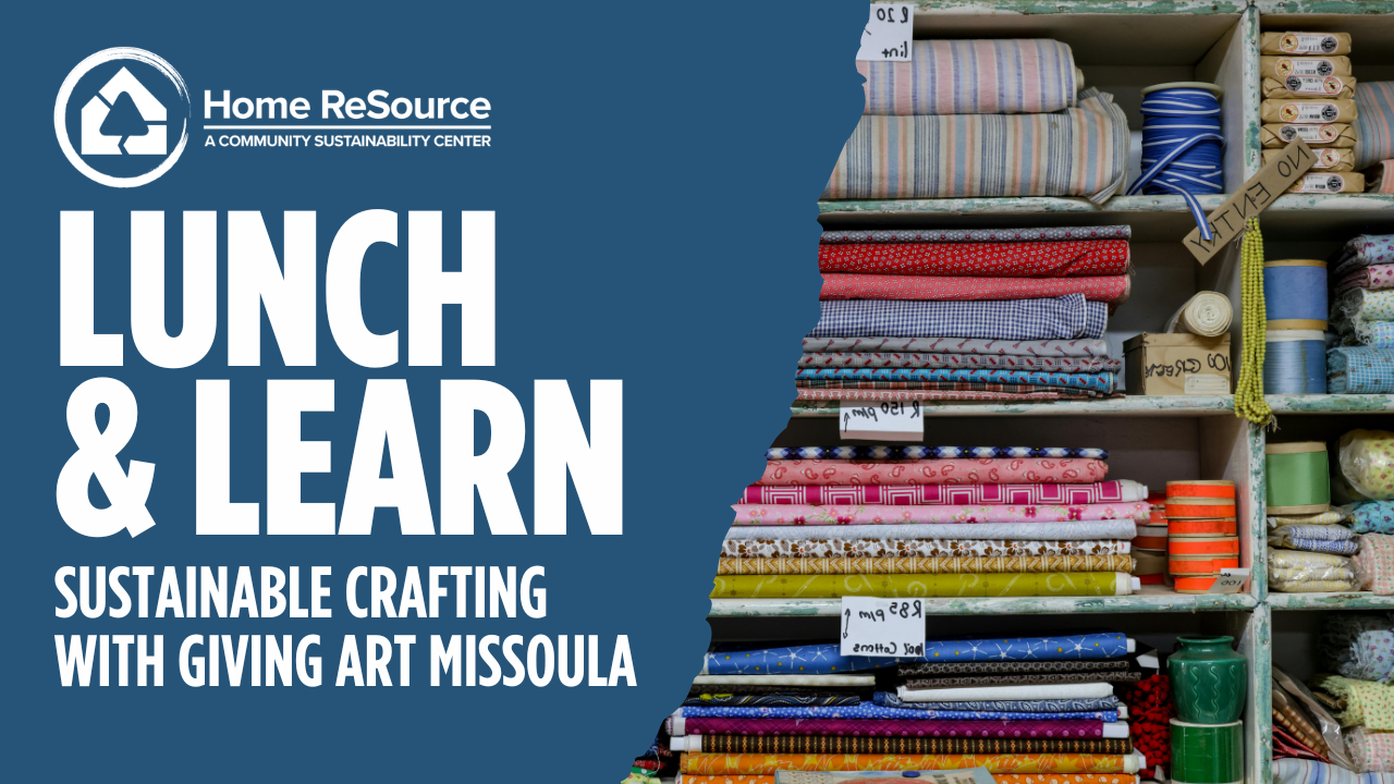 Join Home ReSource and Giving Art Missoula for a free Lunch & Learn focused on sustainable crafting and creative reuse. This one-hour lunchtime event will explore how art supplies and creative materials can be diverted from the landfill and given meaningful second lives. Learn how Giving Art Missoula connects donated materials with artists, educators, and community programs, making art more accessible while honoring the creative spirit behind every donation.